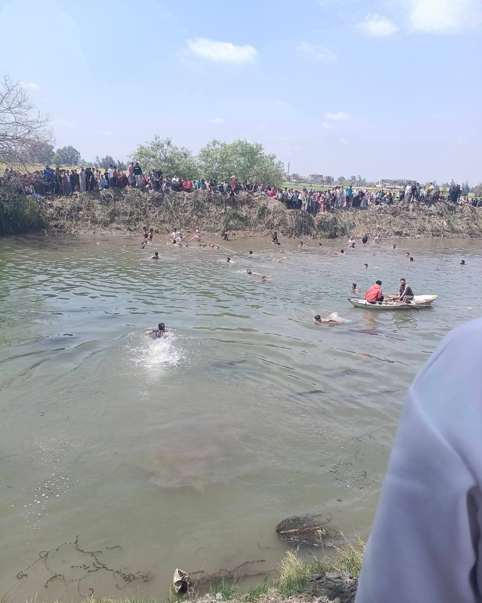 برفقة فريق الإنقاذ النهري، وبدأت عمليات البحث المكثفة في مياه بحر مويس، وسط متابعة دقيقة وتكثيف للجهود