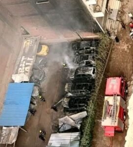 حريق ضخم يلتهم 10 سيارات داخل جراج بالغشام في الزقازيق