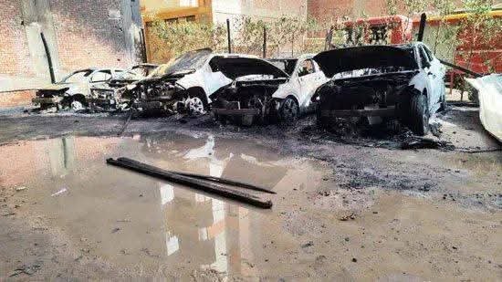اندلاع حريق هائل داخل أحد جراجات السيارات، ما أسفر عن تفحم عدد من المركبات واحتراق أخرى جزئيًا، في مشهد أثار حالة من القلق بين المواطنين.