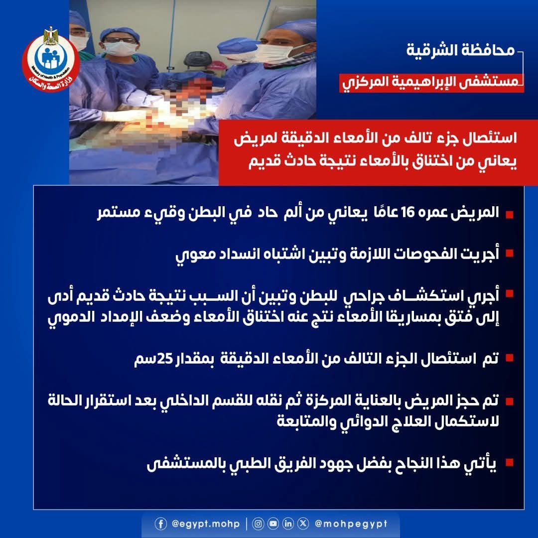 الأخبار الأخبار صحة الشرقية: استخراج بطارية من معدة طفلة ٤ سنوات بمنظار عاجل بمستشفى أبو كبير المركزي كتب : حسنين شبانه صرح الدكتور أحمد البيلي وكيل وزارة الصحة بالشرقية، بأن الفريق الطبي بوحدة… أبريل 26, 2026 master